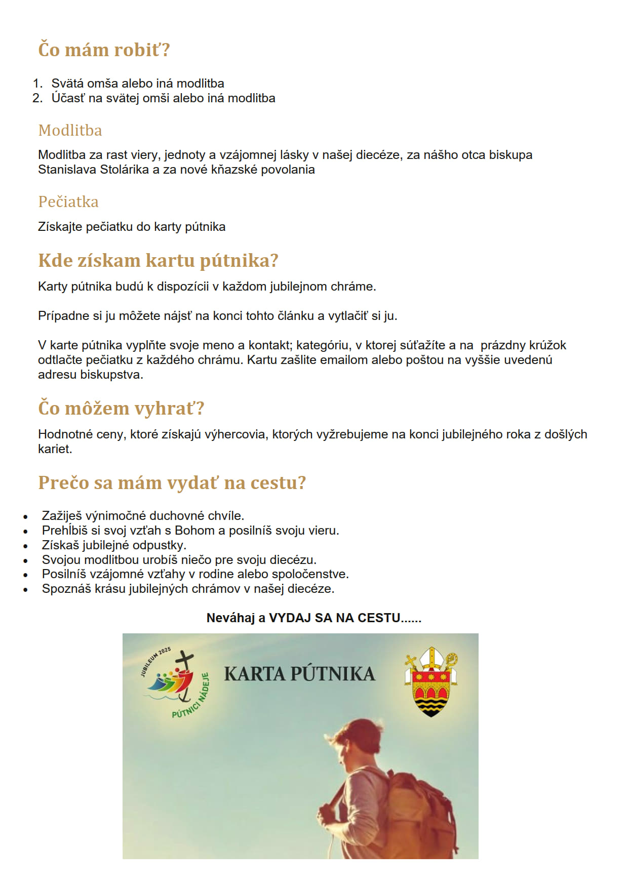 Podrobnejšie informácie sú na stránke biskupského úradu: